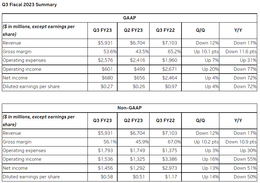 - 3분기 수익이 59억 3천만 달러로 전년 동기 대비 17%, 전 분기 대비 12% 감소