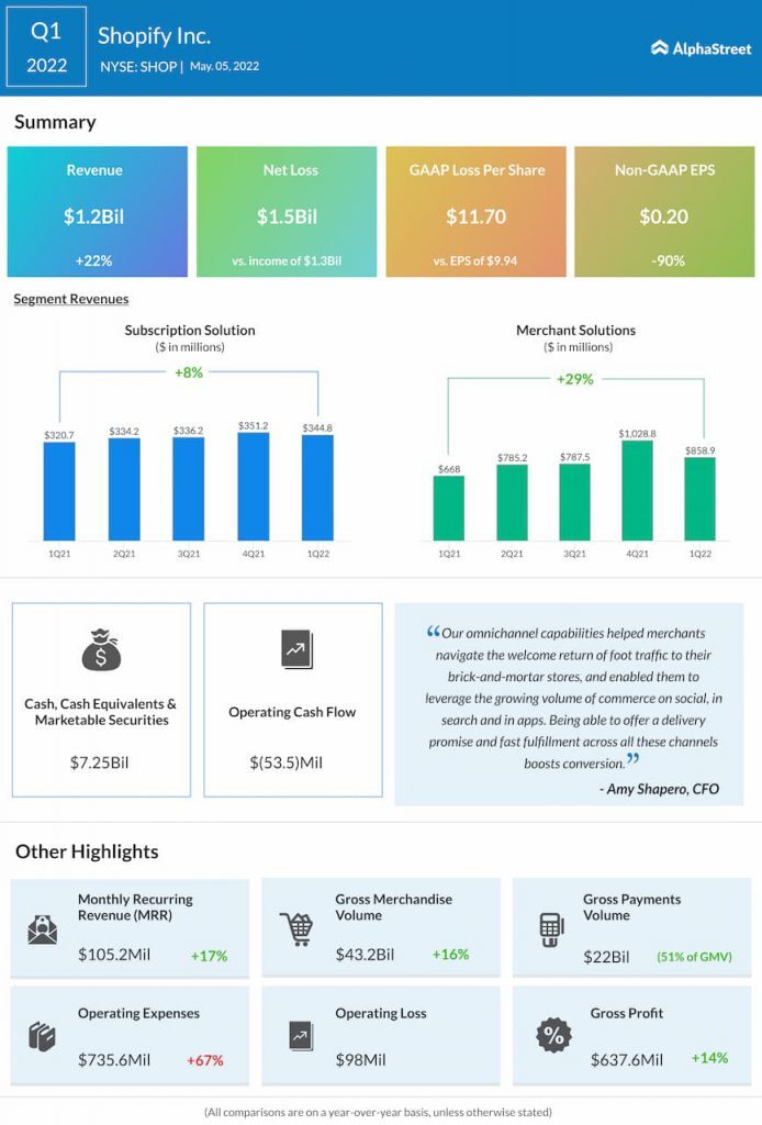 Shopify Inc. (NYSE: SHOP)는 오늘 2022년 1분기 실적을 발표했다.