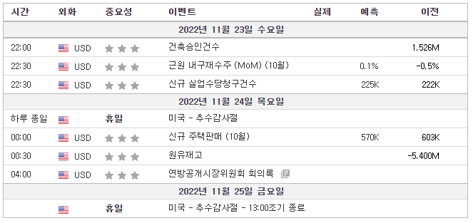 | 11월 2주차 미국 주요 경제일정 및 실적발표일📆 (0) | 2022.11.07 |