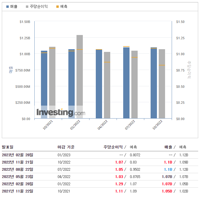 - 예측 : $1.09B (+0.92%)