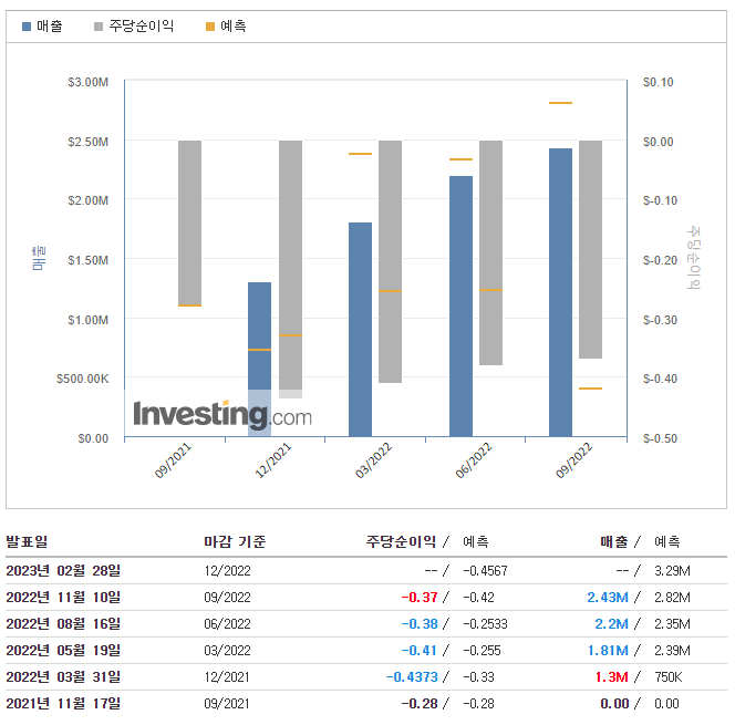 - 2022년 2분기 220만 달러, 2022년 1분기 180만 달러와 비교해 2022년 3분기 240만 달러의 수익을 창출했다.