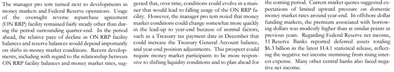 - ON RRP 설비 잔고와 통화 시장 요율 사이의 관계를 포함한 최근의 개발은 시간이 지남에 따라 조건이 ON RRP 설비의 사용 감소로 이어질 수 있는 방식으로 진화할 수 있음을 시사했다.