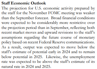 - 직원들이 11월 FOMC 회의를 위해 준비한 미국의 경제활동 전망치는 9월 전망치보다 약했다.