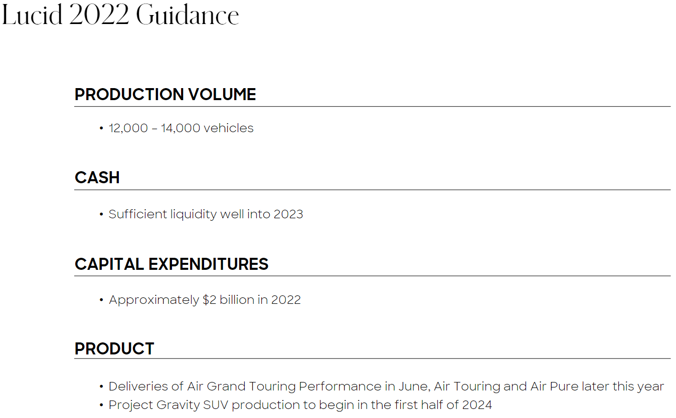 뉴어크, 캘리포니아 주 5월 5일 Lucid Group, Inc.(나스닥: LCID) 시판 중인 전기자동차 중 가장 긴 범위, 가장 빠른 충전으로 새로운 표준을 정립한 오늘, 2022년 3월 31일에 종료된 1분기 재무 결과를 발표했다.