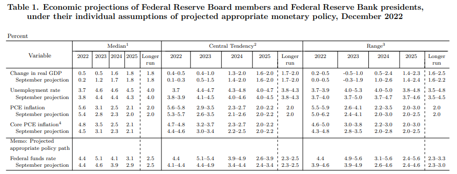 - FRB의 2023년 말 Fed Fund 금리 중앙값은 5.1%로 9월 전망치의 4.6%에서 상승했다.