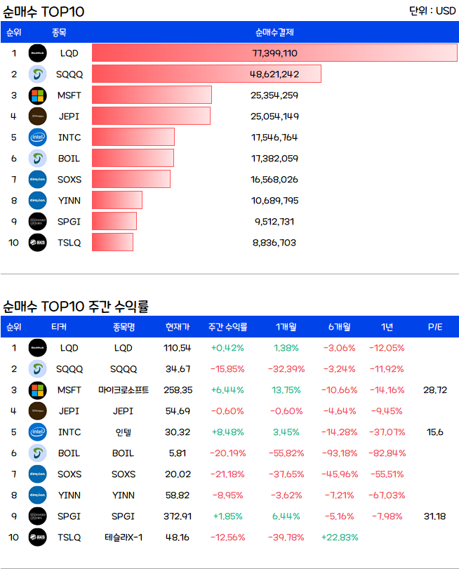2월 1주차 미국주식 순매수 TOP10, 씸플요약입니다.