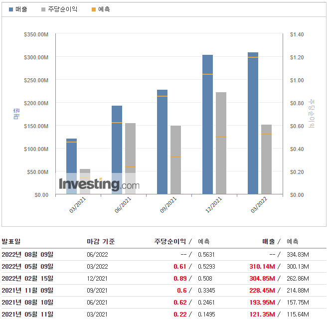 - 수익. 총 매출은 3억 1천만 달러로 2021년 1분기보다 156% 증가했다. 총 수수료 수입은 3억 1,400만 달러로 전년 대비 170% 증가했다.
