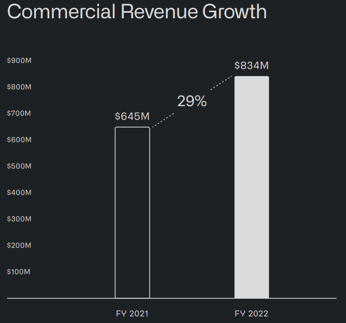 - 상업 수익은 전년 대비 29% 증가한 8억 3,400만 달러를 기록했습니다.